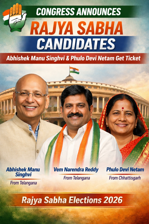 राज्यसभा चुनाव: कांग्रेस ने उम्मीदवारों की सूची जारी की, अभिषेक मनु सिंघवी और फूलो देवी नेताम को मिला टिकट
