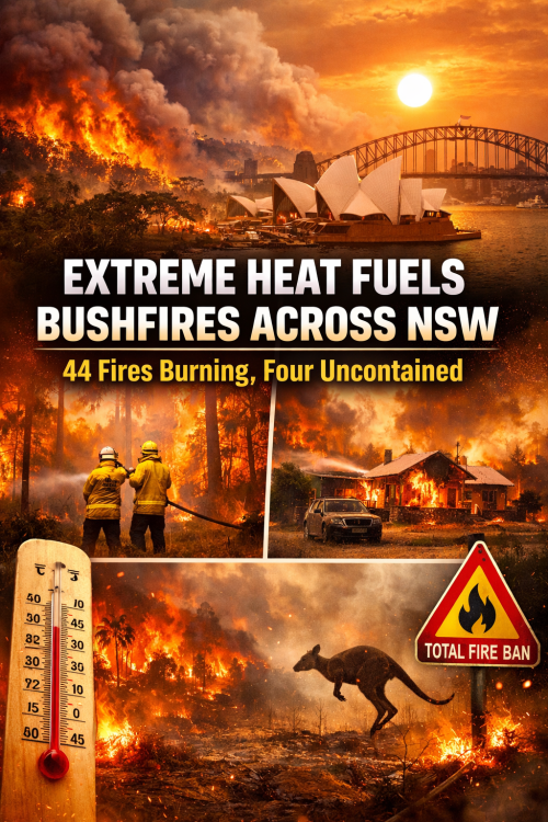 एनएसडब्ल्यू में भीषण हालात: 44 जंगलों में आग, चार अब भी बेकाबू
