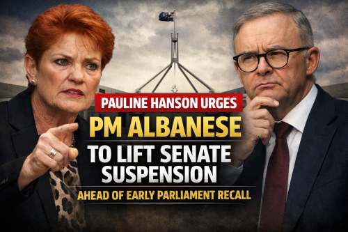सीनेट निलंबन हटाने की मांग: पॉलिन हैंसन ने प्रधानमंत्री अल्बानीज़ को लिखा पत्र