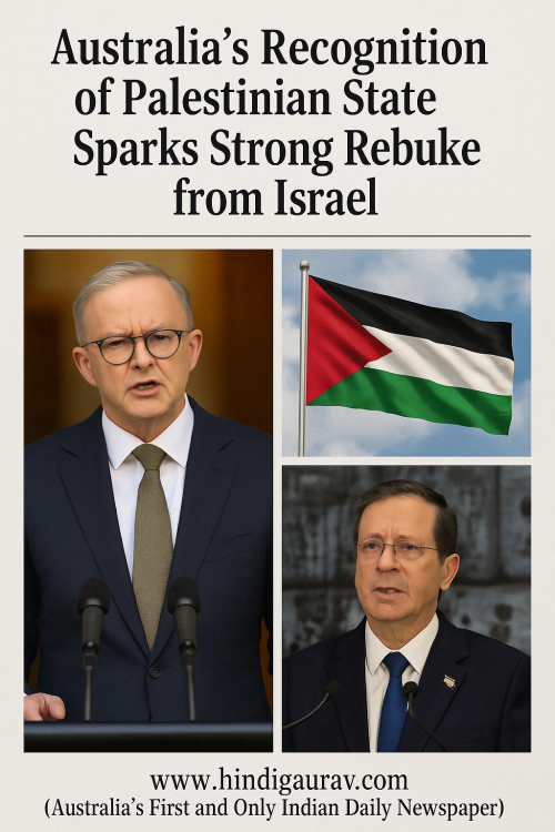ऑस्ट्रेलिया द्वारा फ़िलिस्तीन को मान्यता देने पर इज़राइल की कड़ी आपत्ति