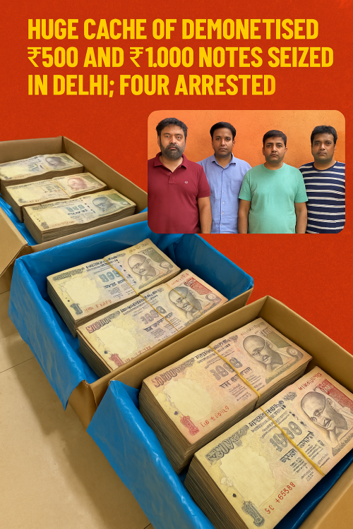 दिल्ली में नोटबंदी के बंद नोटों का बड़ा जखीरा बरामद, चार आरोपी गिरफ्तार