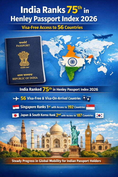 हेनली पासपोर्ट इंडेक्स 2026: भारत 75वें स्थान पर, 56 देशों में वीजा-फ्री पहुंच