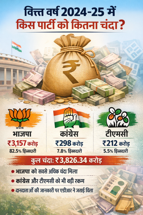 वित्त वर्ष 2024-25 में भाजपा को 3,157 करोड़ से अधिक का चंदा, कांग्रेस और टीएमसी को भी मिली बड़ी राशि: एडीआर रिपोर्ट