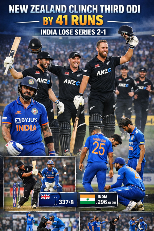 न्यूजीलैंड ने तीसरा वनडे 41 रन से जीता, भारत 2-1 से हारा सीरीज
