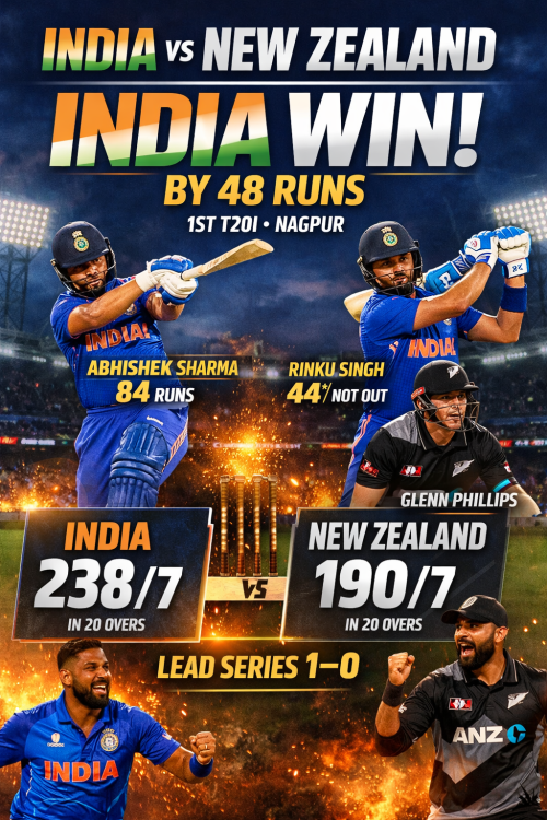 अभिषेक–रिंकू के तूफान में उड़ी न्यूजीलैंड, भारत ने पहले टी20 में 48 रन से दर्ज की शानदार जीत
