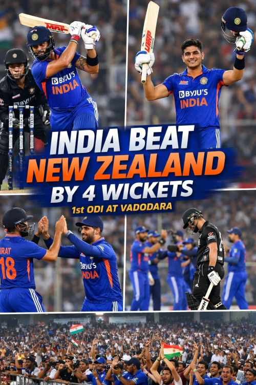 वडोदरा वनडे: कोहली की 93 रनों की पारी से भारत ने न्यूजीलैंड को 4 विकेट से हराया