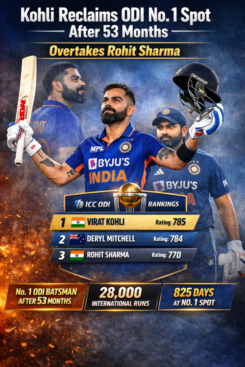 रोहित से छीना ताज, 53 महीने बाद फिर वनडे के नंबर-1 बल्लेबाज बने विराट कोहली