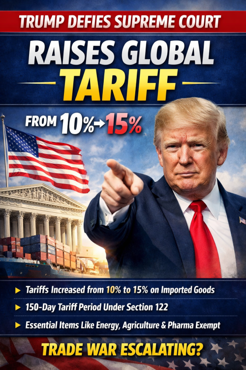ट्रंप ने वैश्विक टैरिफ 10% से बढ़ाकर 15% किया, सुप्रीम कोर्ट के फैसले के बाद बड़ा कदम