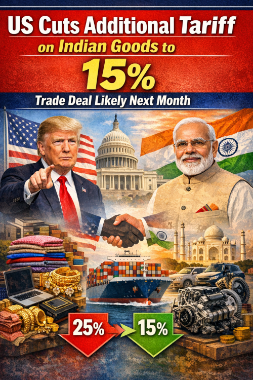 अमेरिका ने भारतीय उत्पादों पर अतिरिक्त टैरिफ घटाकर 15% किया, 24 फरवरी से लागू; व्यापार समझौते पर अगले महीने मुहर संभव