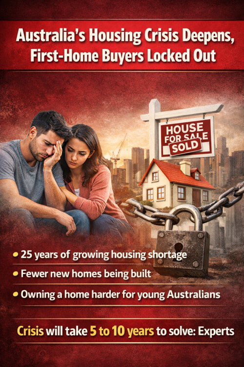 ऑस्ट्रेलिया में बढ़ती आवासीय कमी से पहली बार घर खरीदने वालों के लिए संकट गहरा